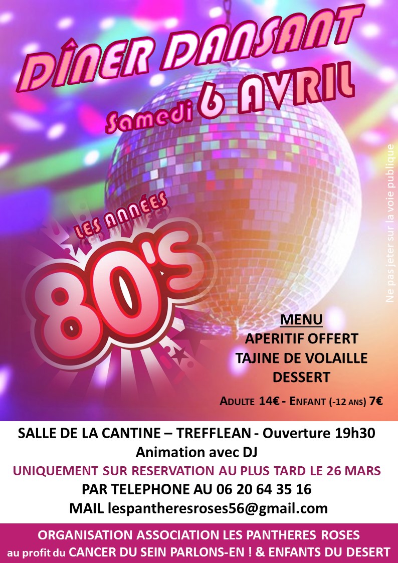 L'association "Les Panthères roses 56" organise une soirée Années 80, le 6 avril à Treffléan. L'intégralité des fonds seront reversés au trek au profit des associations CANCER DU SEIN PARLONS-EN et ENFANTS DU DESERT.